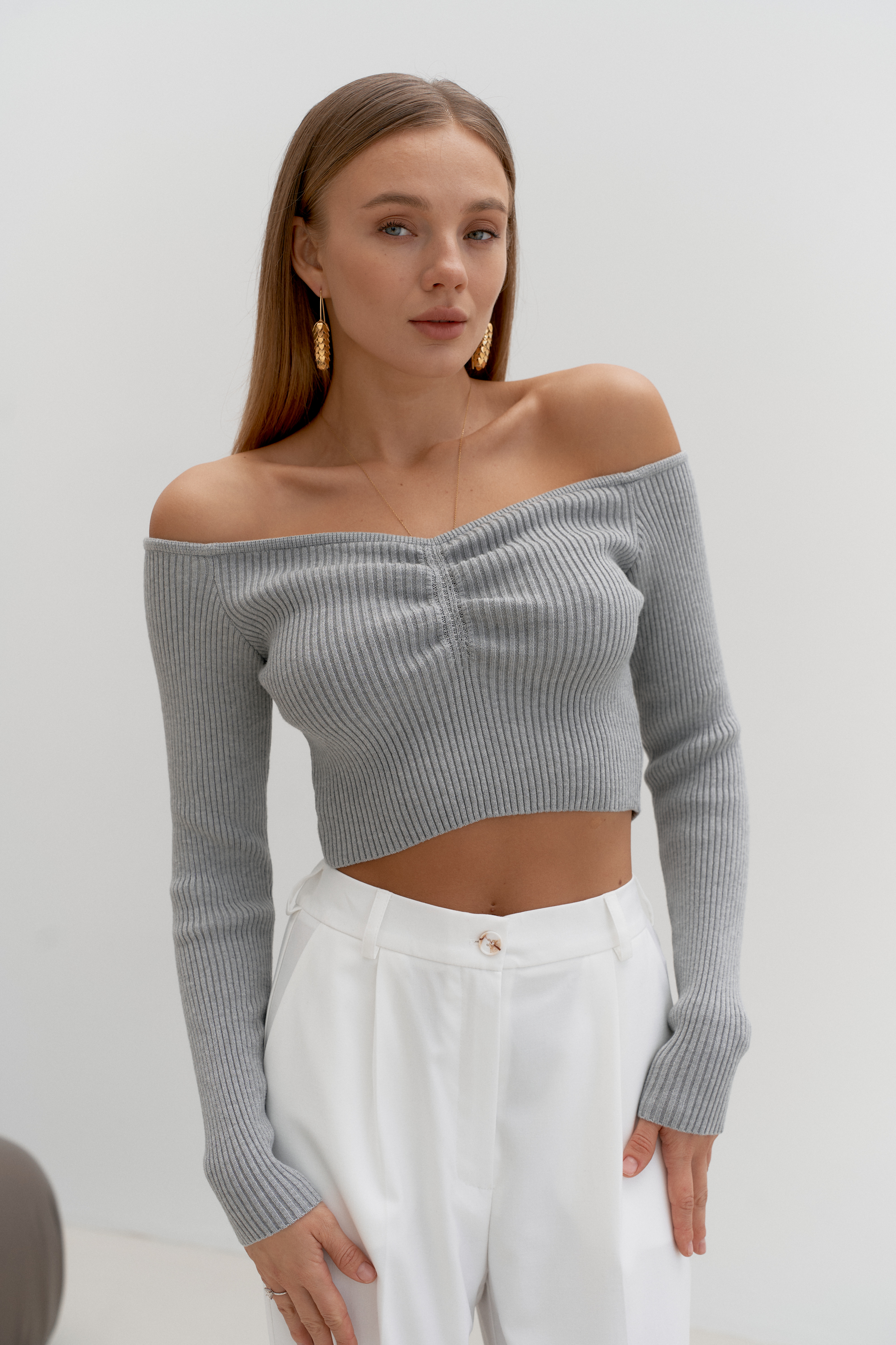 В'язаний літній вкорочений топ зі спущеними плечами "Саманта" - Cірий IWOMAN