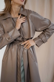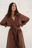 Тренч з еко шкіри на запах - Коричневий IWOMAN